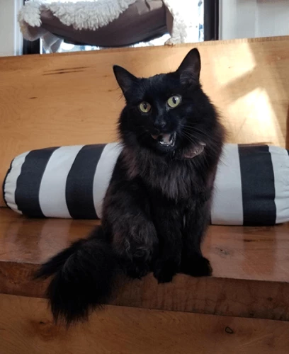 Betty Davis is the definition of cute little fluffball. She is a bit shy, but with time, we expect her personality to fully blossom. She is very affectionate and loves pets. Come in and give her some love, she would be thrilled to cuddle up next to you. Betty Davis has tested positive for FeLV.