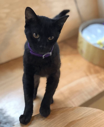 Coconut is truly a very special cat. She is a Tortie who came to us from Hawaii. She is incredibly playful and loves to snuggle with her best friend Trixie. Although she is very small, don't let that deceive you, she is 3 years old. Coconut has tested positive for FeLV.