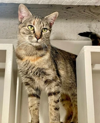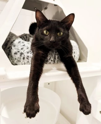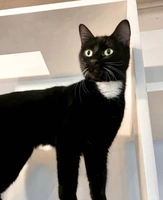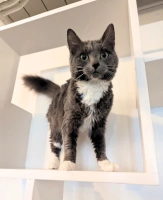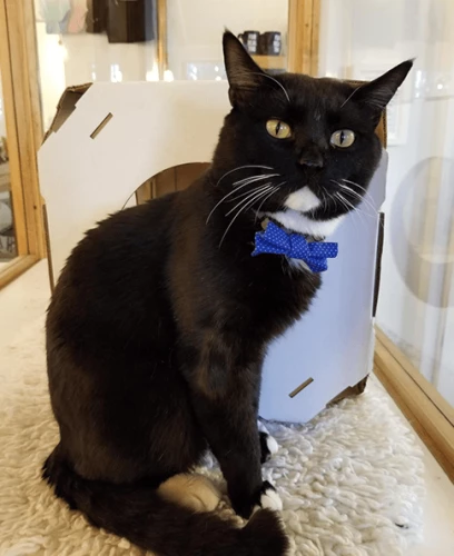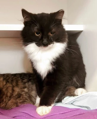 Gerard is down for the snuggling action. All he wants to do is post up on a nice fluffy cushion and purr his day away. He is also quite the baker, typically makes biscuits several times through the day. You can identify him by his white soul patch / neck beard and his beautiful white boots. Gerard has tested positive for FeLV.