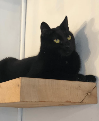 Linda is our stunning black panther who takes time to warm up. She chooses the humans she spends times with very carefully and if she chooses you, you should feel very special, like really special (half of us are still waiting for that special moment). She is a total love bug and would do best in home with lots of toys and high perches where she can observe and survey the environment. She has tested positive for FeLV.