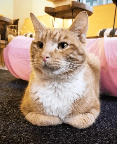 A self-care wizard, this boy likes to cuddle up and snooze! At home, you'll make Marmalade happy with a cozy kitty bed or a pile of warm laundry. He's the purrrfect companion for when you want to indulge in 'eat, nap, repeat'. Marmalade has tested positive for FeLV.
