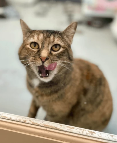 This lovely girl is still warming up and purroving herself to be the gentlest little lady! With a little extra love and time, we know Miska will be the purrfect lap cat.