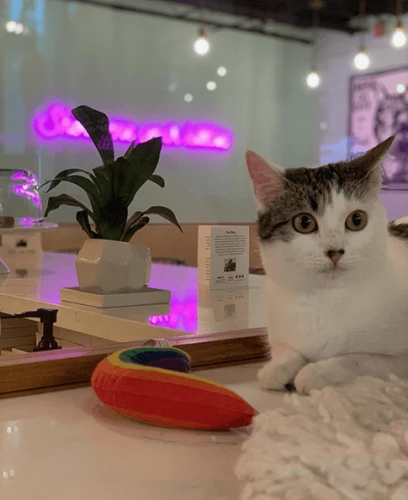 Molly came to us all the way from Atlanta, Georgia, and she is such a peach! Half tabby, half white chocolate bar, this playful girl is curious, playful, and a total purr-machine. She gets along well with other kitties and is the purrfect adventure buddy! She has tested positive for FeLV.
