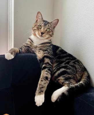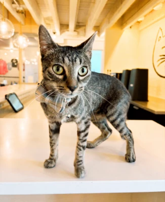Our sweet wiggly worm Sake is a crowd favorite for a reason! This boy loves treats, belly scritches, and playing with guests from the other side of the cat room door. His easygoing nature and good behavior make him an excellent role model for the other kitties, and the ideal candidate for purrrmanent resident. Sake arrived at NEKO with the very first litter of kitties and has been President and CEO since then!