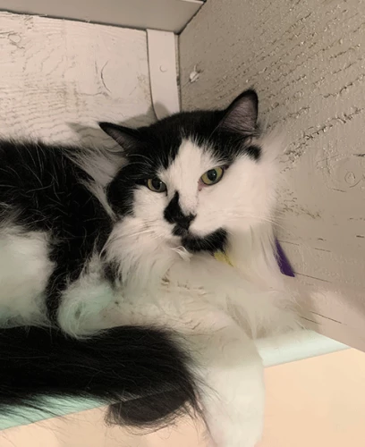 Sprinkles the boy cat is a big, poofy sweetheart. He tends to be a little nervous in unfamiliar situations, but once he’s comfortable he’s like putty in your hands. Sprinkles does not enjoy being picked up or carried but he will come to you for affection. This fluffy boy will need help grooming his long, luscious coat. Sprinkles would do best in a home with just his sister Flower and cat-savvy respectful children of any age.
